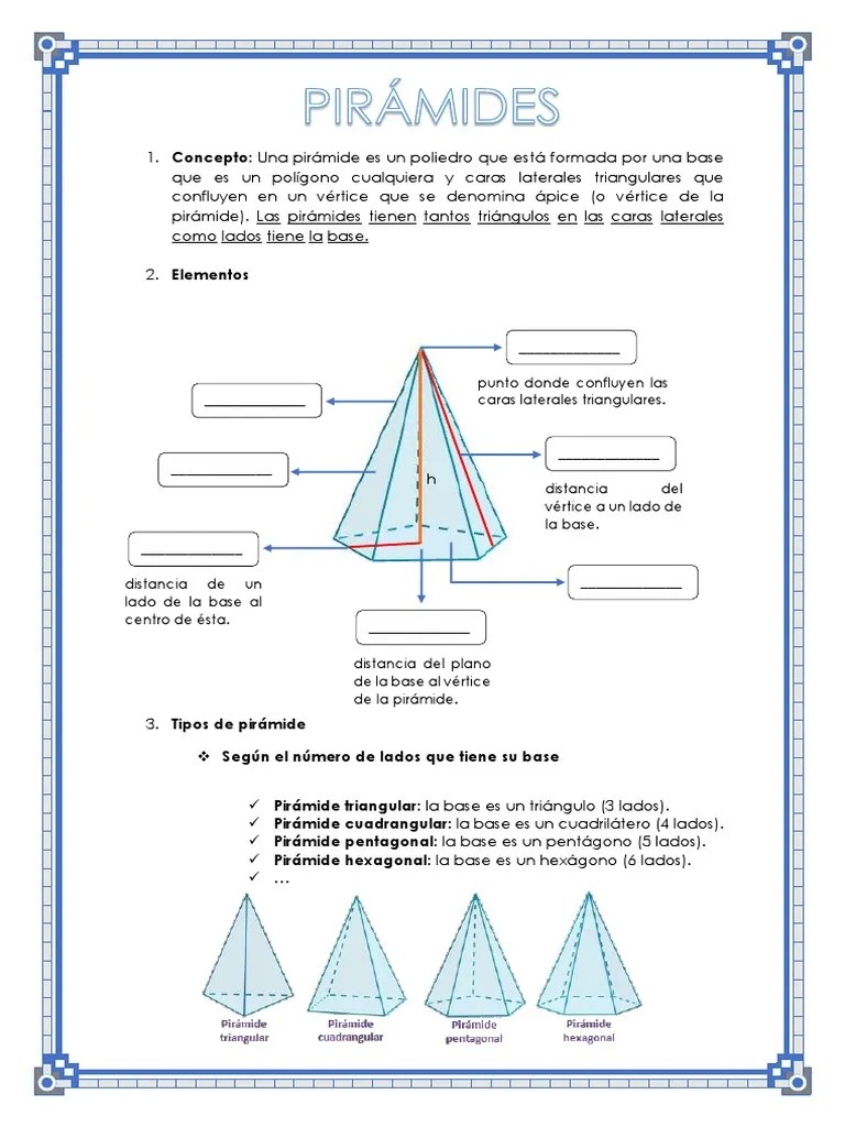 También se ven los tipos de pirámides como la cuadrangular, triangular, rectangular, hexagonal, .